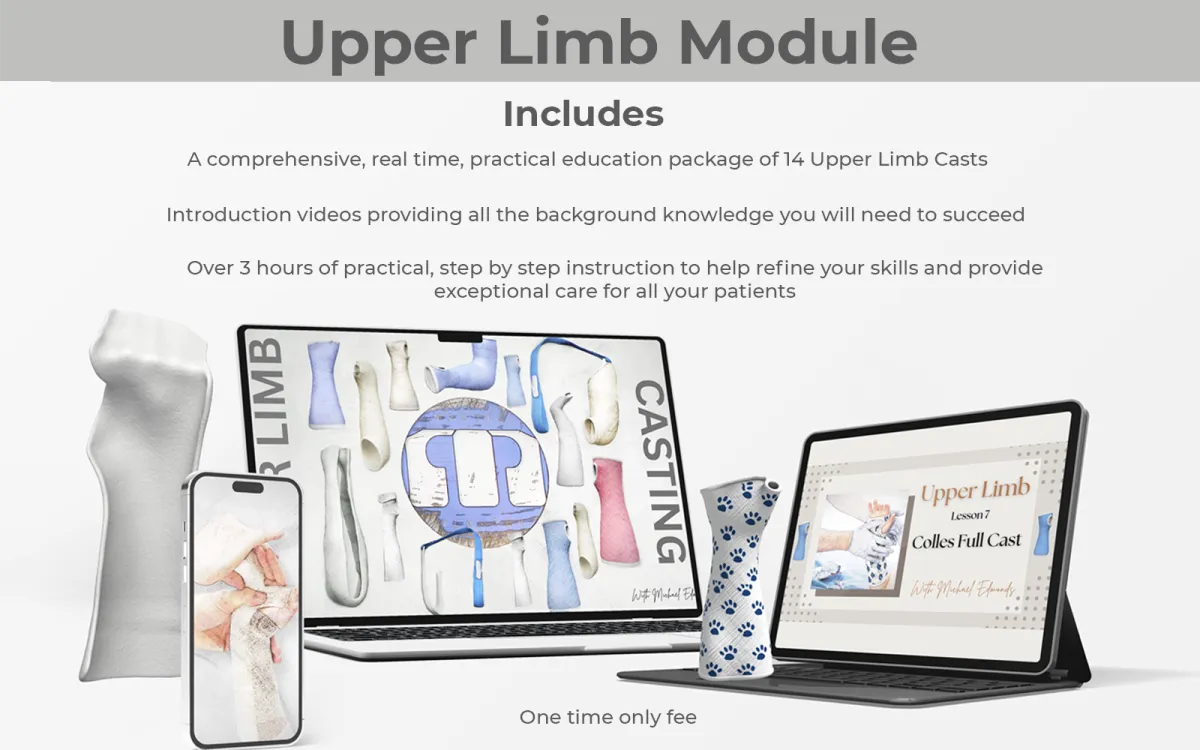 This educational series was developed to standardise and modernise casting instruction, combining visual demonstrations, detailed background information, and structured assessment. It provides institutions and individuals with a reliable foundation in casting and immobilisation principles.